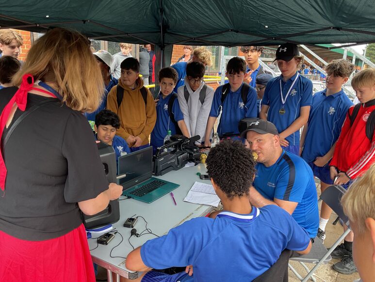 Our talented Media students – led by Mrs Glendenning – really stepped up to the plate this year, live- streaming events and broadcasting live interviews with student winners throughout the day. Our interviewer was none other than Head of MFL Mr Johnson, who was an absolute natural behind the microphone/onscreen, congratulating the winners and encouraging them to speak live on camera. Working brilliantly together, the Media team of students and staff were highly professional from the onset and they really did the school proud.