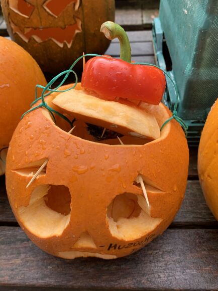 It was lovely to see so many creative pumpkin competition entries: one with berry hair and ‘collagen’ enhanced lips, another with a sinister ‘Peppa Pig’ twist and another that had a ‘Frankenstein’ feel to it – with surgical staples and blood soaked teeth ripping into a smaller sized pumpkin! Creativity at its best – and most gory!