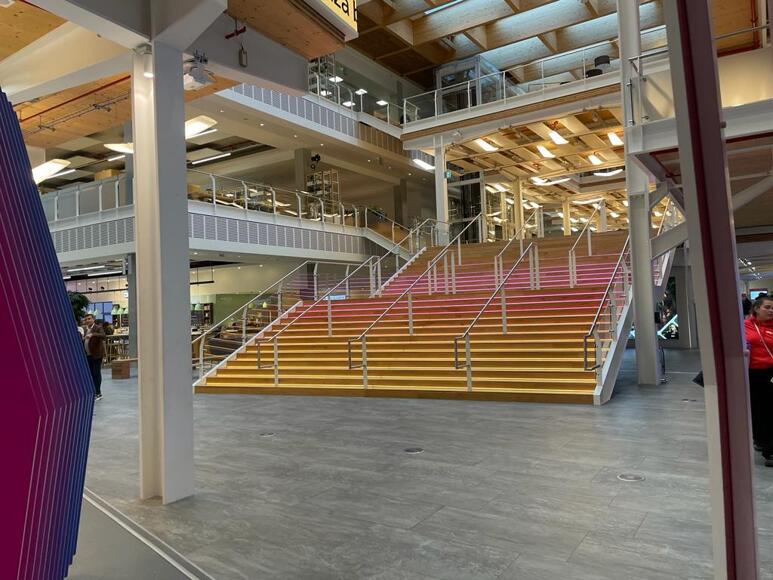 “State-of-the-art building, colourful and with open spaces to work in and inspire creativity, access to the very latest technology… free cinemas , a free gym, the choice of 13 cafes and a Little Waitrose to pick up dinner before heading off home for the evening….” Sounds great, huh?!