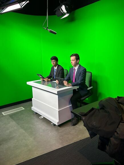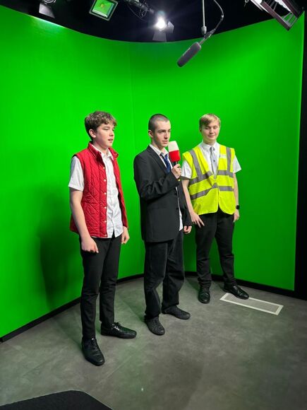 Visiting on separate days, our Year 7 and 11 students embraced the scheme whole-heartedly! Each group was given a specific topic to report on - ‘Wild events across the world’ for Year 7 and ‘Extreme Weather’ for Year 11. The groups chose individual roles based on their particular interests and strengths and worked effectively as a team. Crucially, they were working against the clock – just like a real report team – and had to work quickly through the stages of planning, directing, presenting, filming, producing, editing and broadcasting the report ‘live’.