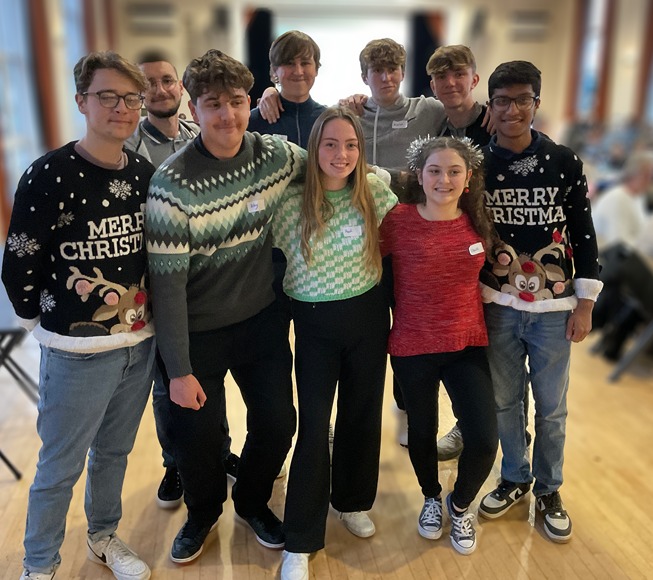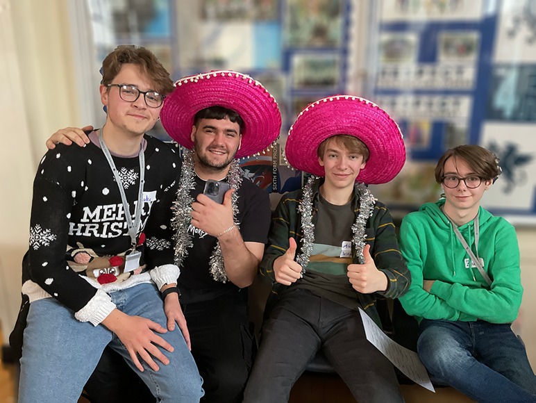 Sixth Form students helped set up the party beforehand and mingled with our guests, ensuring that they felt at home and were enjoying themselves. Head Boy Oskar and Deputy Head Girl Laura were perfect Quiz Masters and Alex and Ricardo were fabulous ‘Masters of the Christmas Cracker Joke Tellers’!