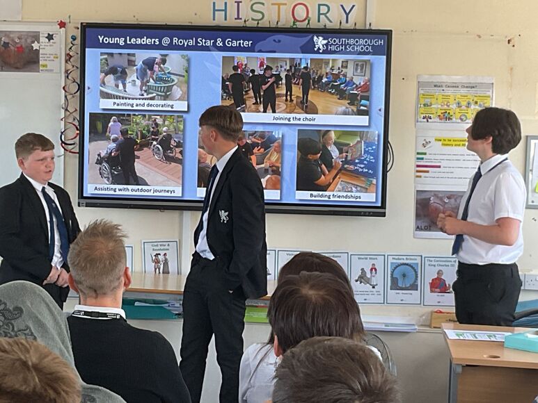 Three students from the Young Leaders Award then spoke about their work at The Royal Star and Garter Residential Home for elderly veterans. It was clear for all to see how much pride and achievement the boys felt regarding their weekly visits helping and socialising with the residents. And by all accounts, the residents loved them, too!