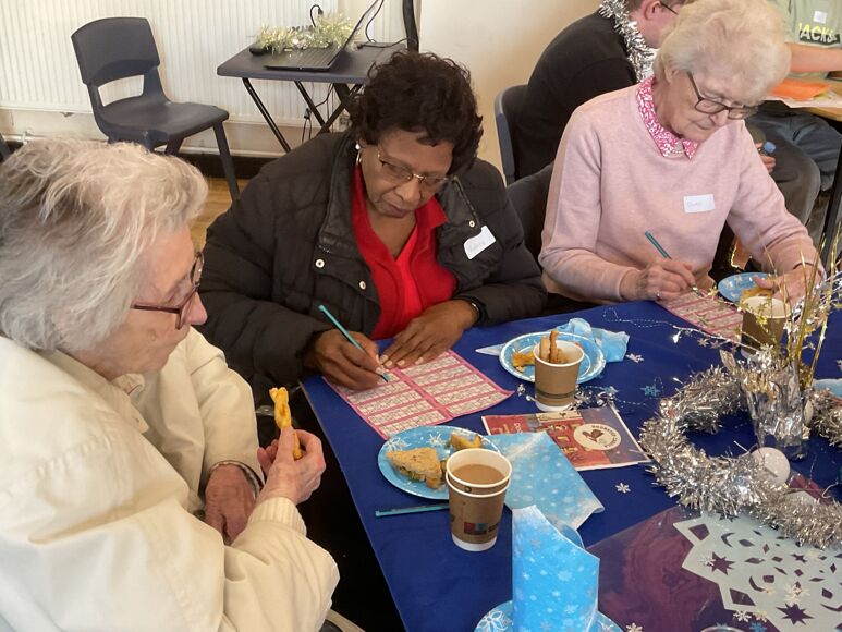 Members of Southborough staff generously donated a whole tableful of Christmas gifts – ranging from toiletries, wine, biscuits, chocolate, candles and scarves – and these served as ideal ‘prizes’ that were on display for our guests to pick and choose from throughout the course of an afternoon packed with food, drink, bingo and a Christmas quiz.