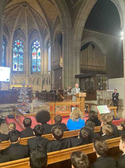 Our thanks must go to St Matthew’s Church and Revd Caroline Kramer for kindly hosting the wonderful service and to all the kind parents who came along to support their children. Thank you to our outstanding students, namely -ALEX B 8RPA (who delivered a superb solo trombone performance of Deck The Halls) Santosh T 7DRA, Denis AL 8CME, Isaac M 7DPE and Henry A 8RPA (who all delivered their well-rehearsed readings so wonderfully) and Archez T 8MCO (who performed an outstanding solo piano performance of Allegro).