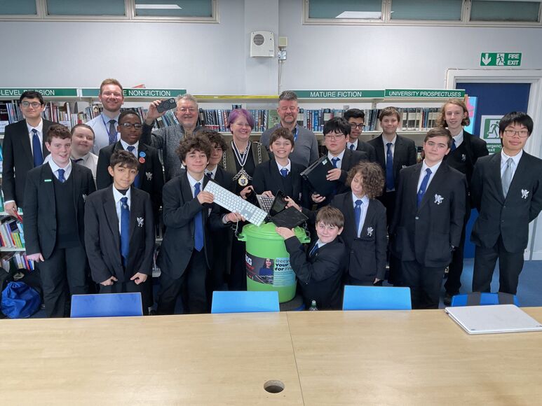 Before the Half Term break, after weeks of meticulous planning, the Eco Team launched this new initiative. Our special VIP guests addressed any security concerns, putting minds at ease. Paul Crossman, Managing Director of the locally based company 'Re-Love Technology,' detailed their comprehensive data wiping process, ensuring absolute data security. He also explained how devices contain crucial, precious metals and minerals that are often sourced at great expense from countries like Ukraine and Africa. By engaging in 'urban mining'—recycling these materials from old devices—we contribute to environmental protection. Valuable metals like gold and silver can be repurposed for the Royal Mint or jewellery companies, while minerals like lithium, tellurium, and manganese are recycled, highlighting the rising costs of new mobile devices.