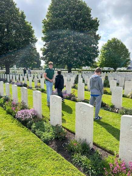 The following day –the 80th anniversary of V.E Day – students and staff departed early to experience a packed itinerary which included a visit to Omaha Beach, Gold Beach, Longues-sur-Mere Battery and Arromanches Musee du Debarquement where they learnt about the American and British Beach Assaults, the role of the Navy and the technical and logistical side of the invasion. Having WW II Historian David on hand throughout meant that the boys were able to ask lots of questions and gain an better understanding of everything. A visit to Bayeux CWGC (British & Commonwealth) Cemetery provided a poignant reminder of the sacrifices made by so many.