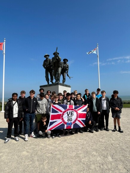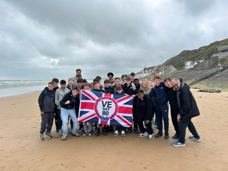 The 80th anniversary of VE (Victory in Europe) Day, marking the end of World War II in Europe, was commemorated earlier this month on Thursday May 8, 2025. Celebrations across the UK included a military procession down The Mall, appearances by the King and Queen at Buckingham Palace, and a Service of Thanksgiving at Westminster Abbey. Up and down the country, people got together with neighbours and friends and held street parties or afternoon tea gatherings to mark such a special occasion. Thirty lucky students and staff from Southborough, however, were given the opportunity to visit and commemorate such an important event in the very place that played such a pivotal part in the ending of World War II – the Normandy beaches.