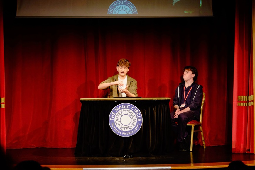 Over the past 5 years, Alfie has honed his magic skills to specialise in what the society calls ‘Close-Up’, rather than ‘Stage’. The key difference is the scale of performance: close-up magic is interactive and performed for small groups with everyday objects, while stage magic is a theatrical show with larger illusions for a large audience. Close-up magic focuses on intimacy and portability, using props that fit in a pocket and often involving the audience directly. Indeed, Alfie has performed at many events both in and outside of school -including regular PTA fund-raising evenings at Southborough and our Senior Citizen’s Christmas Tea Party. He has a charity ‘gig’ coming up shortly and a number of additional bookings in the New Year.