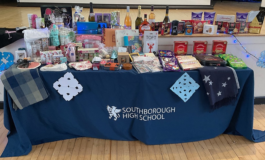 Members of Southborough staff generously donated a whole tableful of Christmas gifts – ranging from toiletries, wine, biscuits, chocolate, candles and scarves – and these served as ideal ‘prizes’ that were on display for our guests to pick and choose from throughout the course of an afternoon packed with food, drink, Southborough raffle and a Christmas quiz.